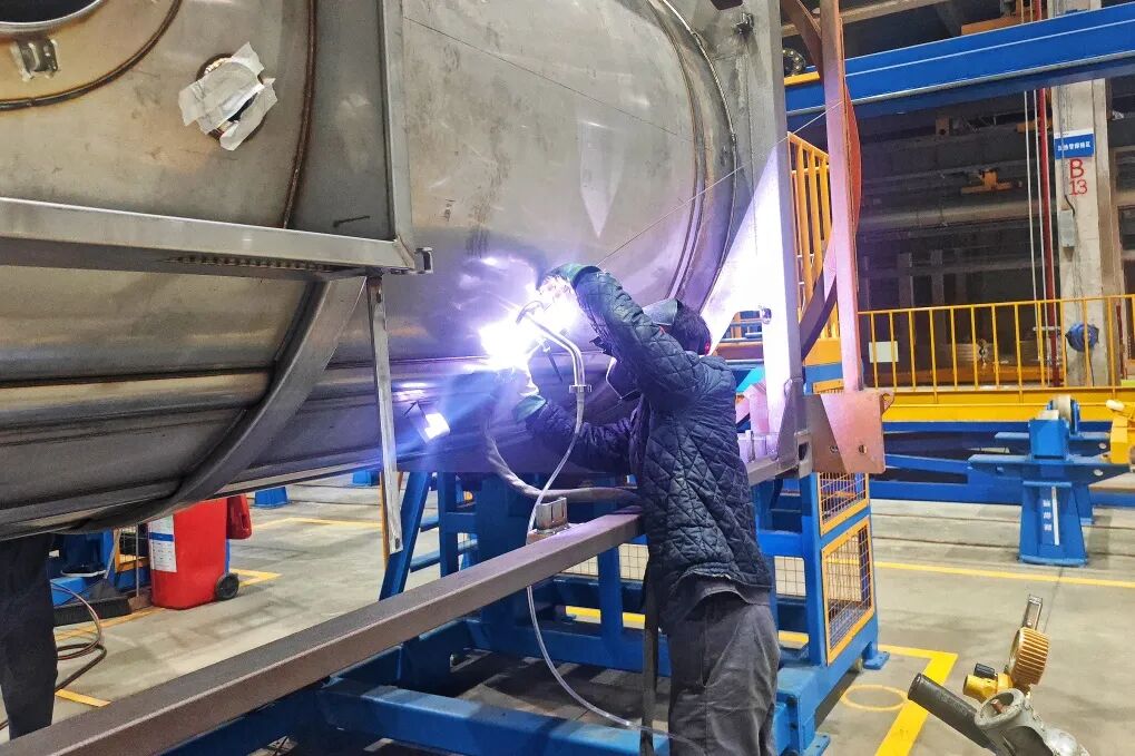 At the Liyang base, workers are racing to produce 200 ISO tanks for an overseas new energy client. The order has been underway since before the Chinese New Year, with the first batch delivered on February 12. Shipments will continue this month, with containers set to depart for the US.
